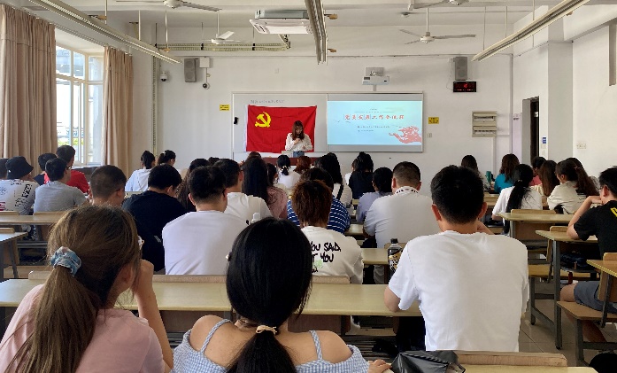 活动第二部分,学生党员张丽红同志为大家介绍了党员发展工作的全流程,主要从入党的基本条件、党员发展的工作流程和入党申请书的撰写和提交三个方面展开了讲解,重点介绍了发展党员的具体步骤和流程,强调了端正入党动机的重要性,最后为新生群体介绍了入党申请书的撰写格式和内容,并鼓励同学们以为人民服务为宗旨,积极加入党组织。