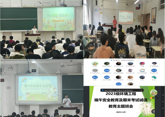 活动以“平安假期,责任先行”为主题。线下,各年级辅导员分批次召开安全教育班会,本科生辅导员殷昊、王一凡、殷莹、王小萌结合真实案例,重点强调宿舍用电安全与应急处理措施;研究生辅导员邓月针对实验室安全管理提出具体要求;心理专职辅导员张燕黎叮嘱学生合理安排假期行程,避免过度放松或沉迷娱乐导致焦虑;本科生班主任汪琼芳通过微信、短信等方式教授学生假期发生意外时的简单自救技巧。线上,团委书记王新燕指导学生发布《端午假期安全指南》专题推文,涵盖交通安全、防诈骗、防溺水等内容。各系辅导员还通过微信群持续推送安全提示,确保教育全覆盖,并强调了意识形态安全的重要性。
