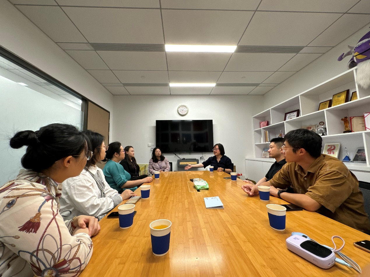 李慧媛围绕国际化学生管理,服务理念如何具体实施在大学生新生教育、创新创业、学生社团以及就业中心、健康中心、毕业典礼、征兵及思政课程等方面进行了详细介绍。在培养锻炼大学生自主管理、自主服务等方面为学院提供了借鉴。此外,双方在大学生党团建设及相关工作的开展方面进行了座谈交流。