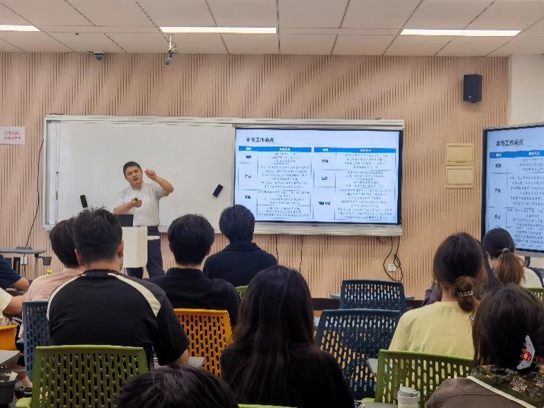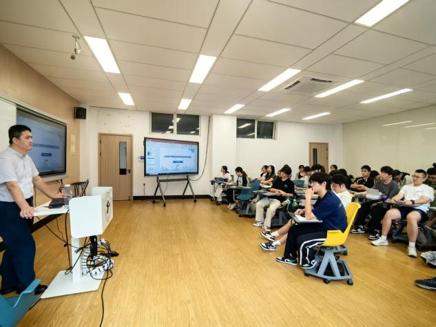 段老师围绕“减污降碳协同增效”主题,从政策、实践、案例、前沿与展望五大维度展开系统讲解,为在座师生构建起一个从理论到实践的完整认知体系。他从宏观政策切入,深入阐释国家推动减污降碳协同增效的战略意义,并对国家与上海市层面的政策导向进行细致解读,帮助学生夯实理论根基,把握政策脉络。他通过详实的数据与生动的场景,展示了上海在能源、工业、交通、建筑等重点领域如何实现污染物减排与碳排放控制的有机结合,生动诠释了“协同治理”的实际成效,使学生对环境规划与管理的系统方法有了直观认知。