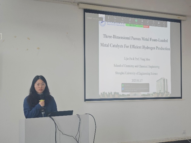 新葡的京集团8814副院长陆杰首先对参会的师生致欢迎词,随后韩国蔚山大学的Tae-Hee Kim教授作了题为“Nonflammable Lithium Rechargeable Batteries using PVA-CN-based Gel electrolyte s”的专题报告,博士后Tran Van Tam、Somnath Chowdhury分别就各自的研究领域进行了分享,并分别进行了题为“Tailoring electronic structures of asymmetric Ni-N3P1 and Mn-N3P1 trifunctional catalyst for enabling enhanced activity and corrosion resistance in both anion water exchange membrane seawater splitting and water-salt Zn-air battery”、“First-Principles Insights into Mo₂C-Based Catalysts for Methylcyclohexane Dehydrogenation: Mechanistic Pathways and Design Strategies”的学术分享。中韩双方参会的研究生们也积极汇报了在各自的研究领域取得的研究成果。期间,与会教师、学生就报告内容进行相应的提问,深入探讨双方目前研究方向的共同性与差异性,踊跃交流各自项目的研究原理、研究方法及研究过程中问题的解决等。