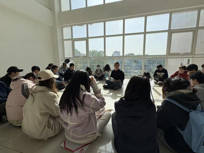 活动伊始,张燕黎强调了人际交往对大学生成长的重要性,鼓励同学们在互动中敞开心扉、真诚交流。活动设置“内外圈对话”“信任盲行”等环节:“内外圈对话”中,同学们围成圈面对面交流家乡故事、兴趣爱好,在轮转中快速熟悉彼此;“信任盲行”环节,一名同学蒙眼,另一名同学作为“引路人”通过语言指令帮助其绕过障碍,过程中双方的默契配合让同学们深刻体会到信任与沟通的核心价值。