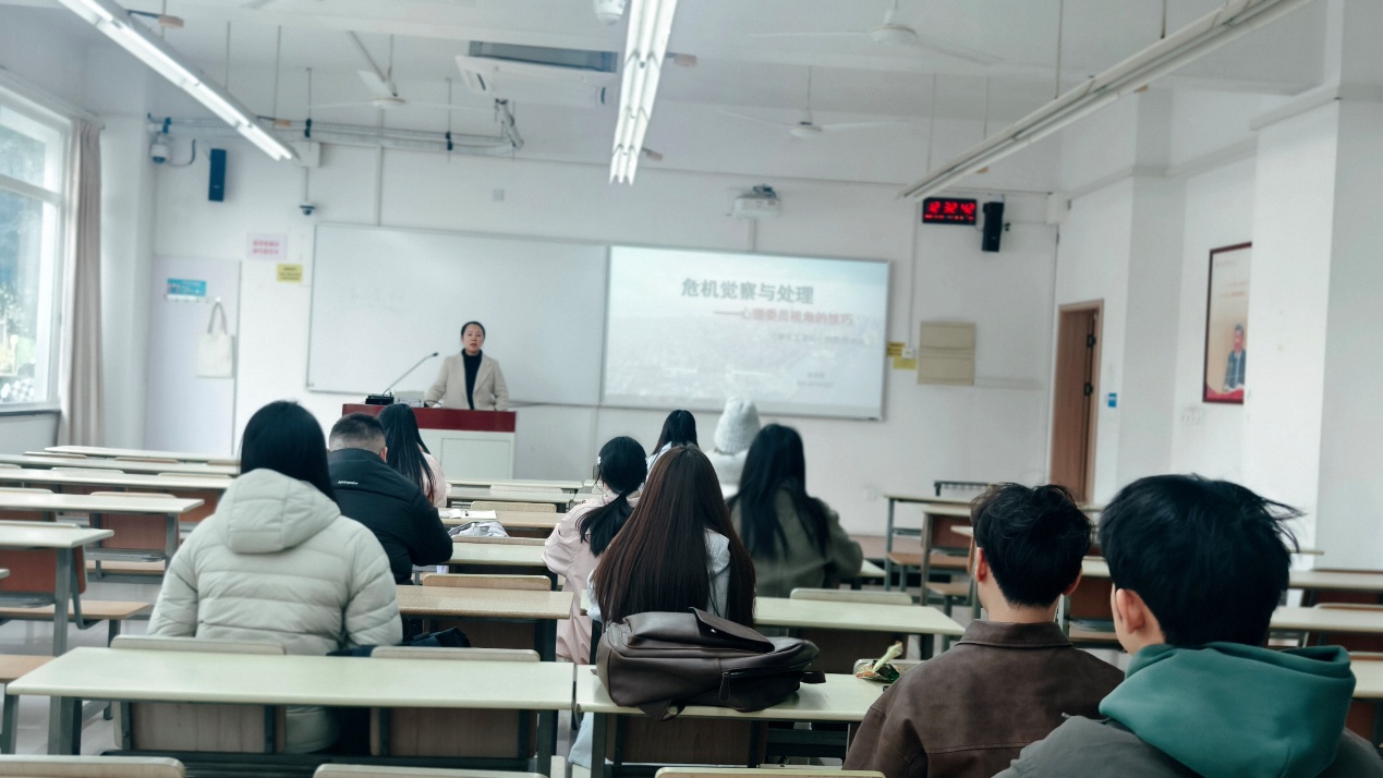 心理辅导员张燕黎老师作为主讲人开展专题培训。她从心理危机的定义、类型及高校学生心理危机的常见诱因入手,系统讲解了心理危机的核心识别要点。针对心理委员的工作场景,张老师重点梳理了需要高度关注的两类信号——行为层面的异常改变和情绪层面的持续波动,并通过具象化的案例帮助委员们建立直观认知。在实践指导环节,张老师结合心理工作伦理,传授了“倾听共情、积极关注、适度陪伴、及时转介”的四步沟通技巧,明确了心理委员的工作边界和应急处理流程。