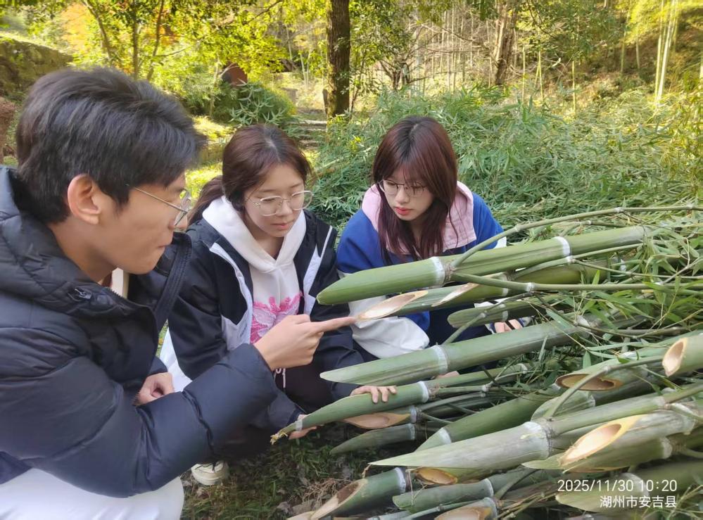 此外,师生考察了安吉大竹海、灵峰山等自然与文化场所,从生态修复、水土保持、文化传承等多维度理解“两山”转化的现实案例。还结合当地丰富的竹资源,以“以竹代塑设想的可行性与环保效益”为主题,探讨了竹材在替代塑料制品减少白色污染方面的潜力,为生态产品价值实现提供了新思路。