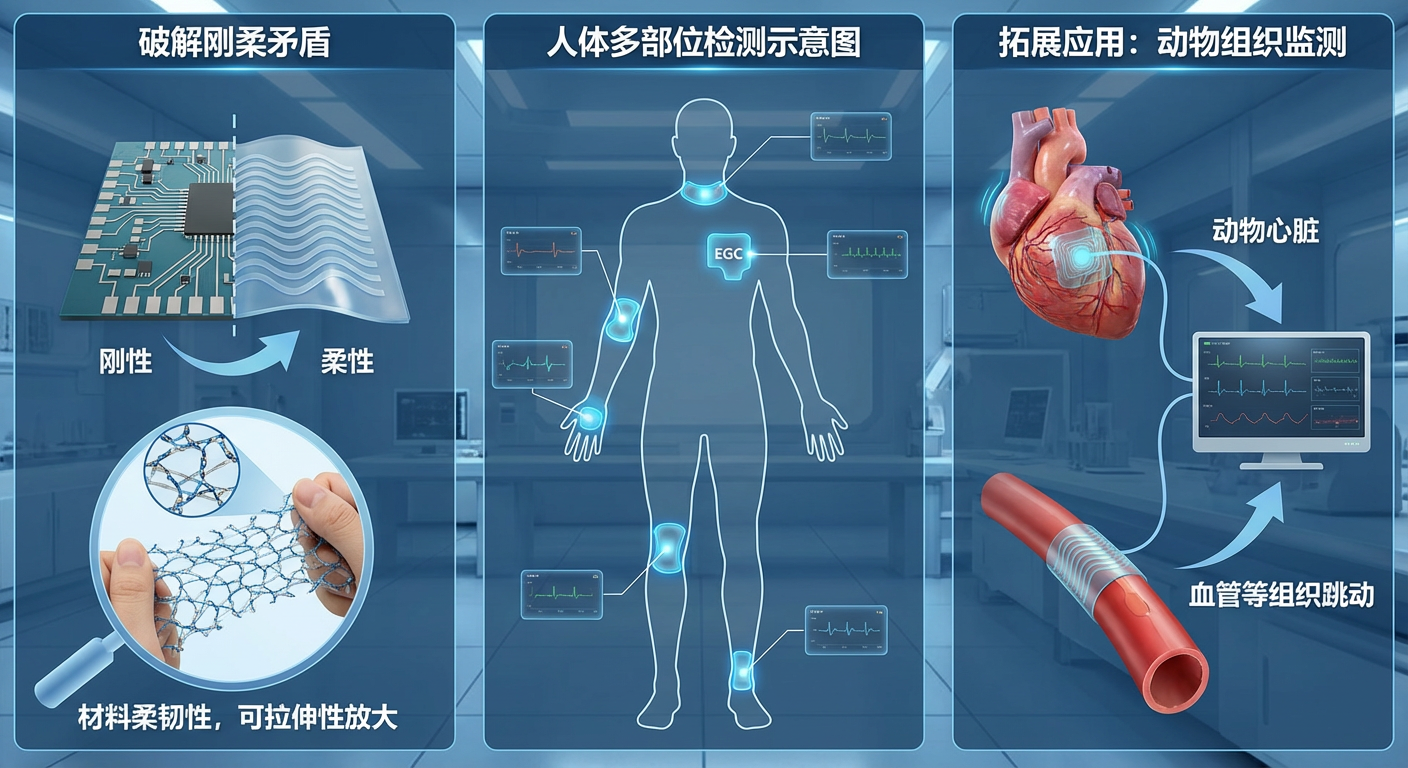 柔性电子技术是未来智能穿戴、医疗健康及人机交互的核心支撑,也是连接人工智能与物理世界的关键桥梁。然而,如何让电子材料在承受反复拉伸、弯折等复杂机械变形时,依然保持稳定且高效的导电性能,是制约该领域发展的全球性技术瓶颈。