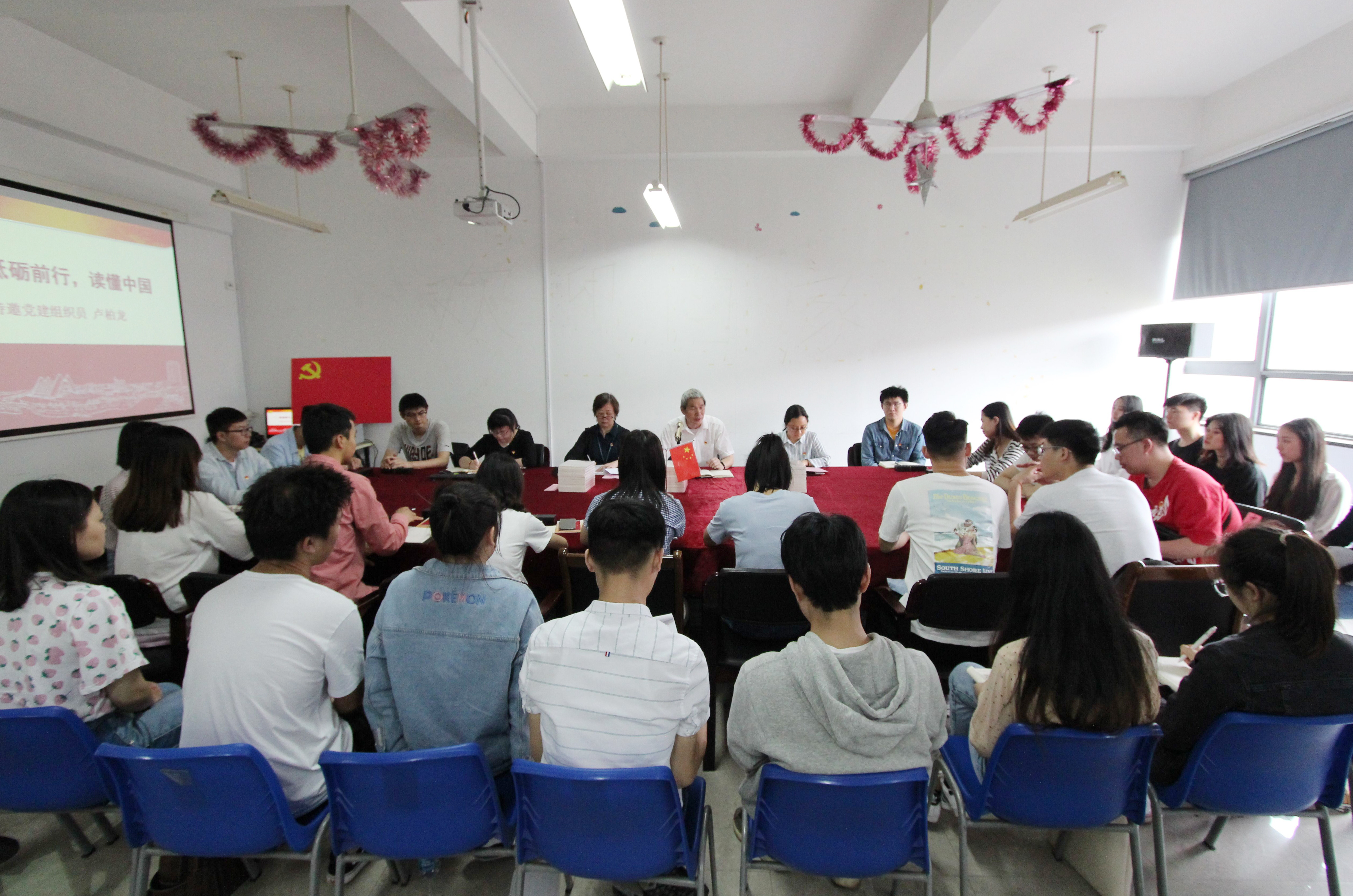 特邀党建组织员卢柏龙老师首先作《砥砺前行,读懂中国》的主题发言。他带领毕业生党员回顾了学校和学院发展的历程,经历了几代人的奋斗与拼搏才铸就今天的美好。他希望青年党员们以“认真负责的态度”、“求真务实的精神”、“开拓创新的勇气”、“奋发有为的精神”、“顽强拼搏的钻劲”积极融入国家的发展中。同时,他寄语广大青年党员,一定要牢记自己的第一身份,时刻守住自己的政治底线,无论是思想上还是行动上都要发挥党员的作用。他提出三点要求:第一,坚定理想信念,不忘初心;第二,坚持学习,努力成为工作典范;第三,注意身体健康,劳逸结合。希望毕业生党员在未来的道路上树立起新时代合格党员的典范和标杆。